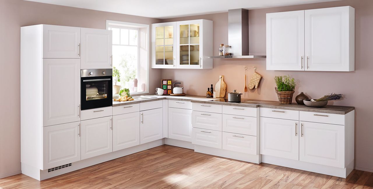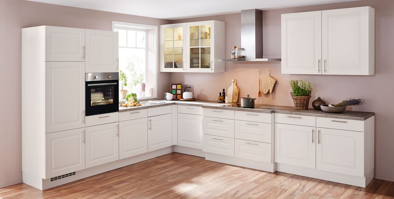 Inklusive Einbaubackofen Edelstahl Laurus LEB5 Energieeffizienzklasse A, Glaskeramik Kochfeld Laurus LCA600, Dunstesse Edelstahl Airforce F100-90 Energieeffizienzklasse B, Kühlschrank Laurus LKG88E Energieeffizienzklasse E, Einbauspüle Edelstahl Rodi Okio Line 85 Deep, Unterschränken mit Frontauszügen, Wandschrank mit Glassprossentüren. Inklusive Lieferung.