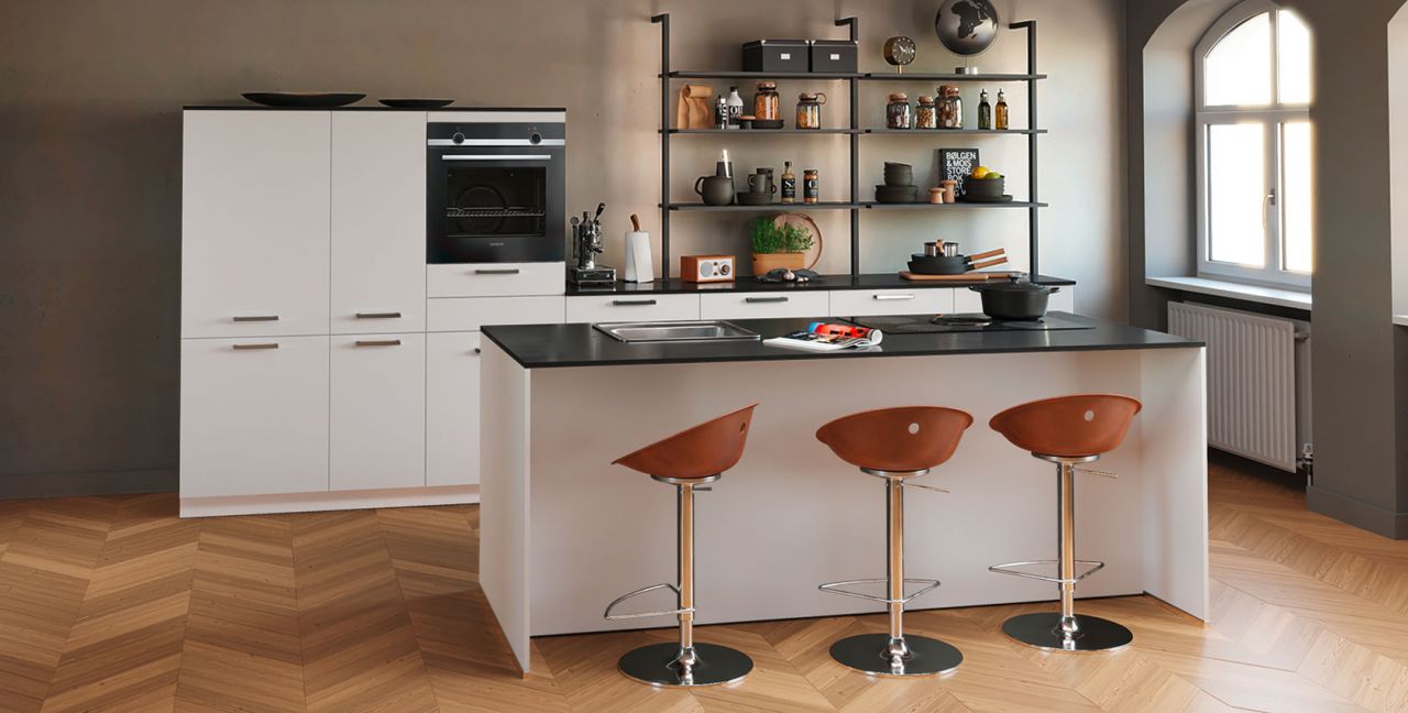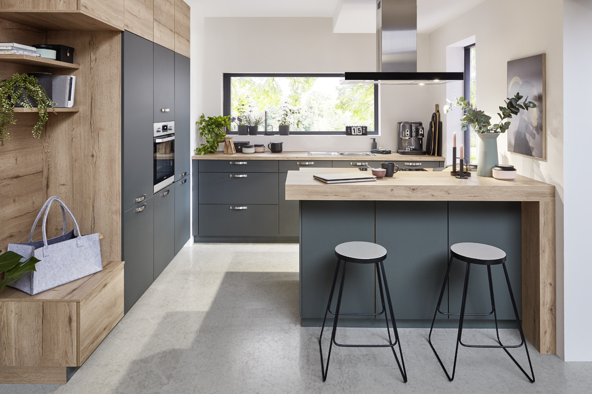 Inklusive Einbaubackofen Neff B64CS71G0K Energieeffizienzklasse A+, Glaskeramik Kochfeld mit Induktion und Kochfeldabzug (Umluft) Bora GP4U, Kühlschrank Neff KU1212FE0 Energieeffizienzklasse E, Geschirrspüler vollintegriert Neff S157ZCX01E Energieeffizienzklasse B, Einbauspüle Edelstahl Rodi NewManaus, Geschirrschrank, Stollenregalsystem, Esstheke, XL-Schränken. Inklusive Lieferung.