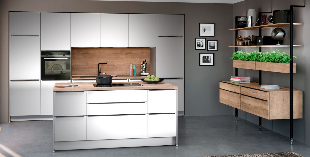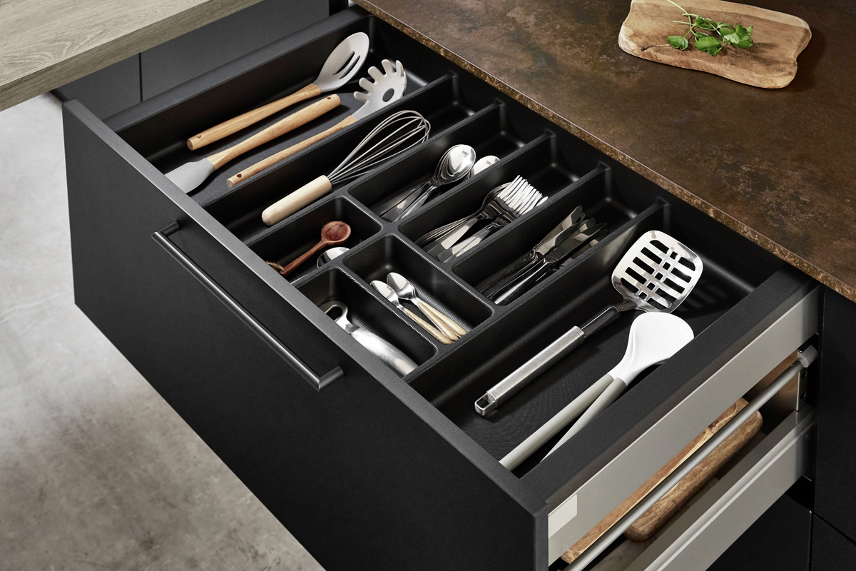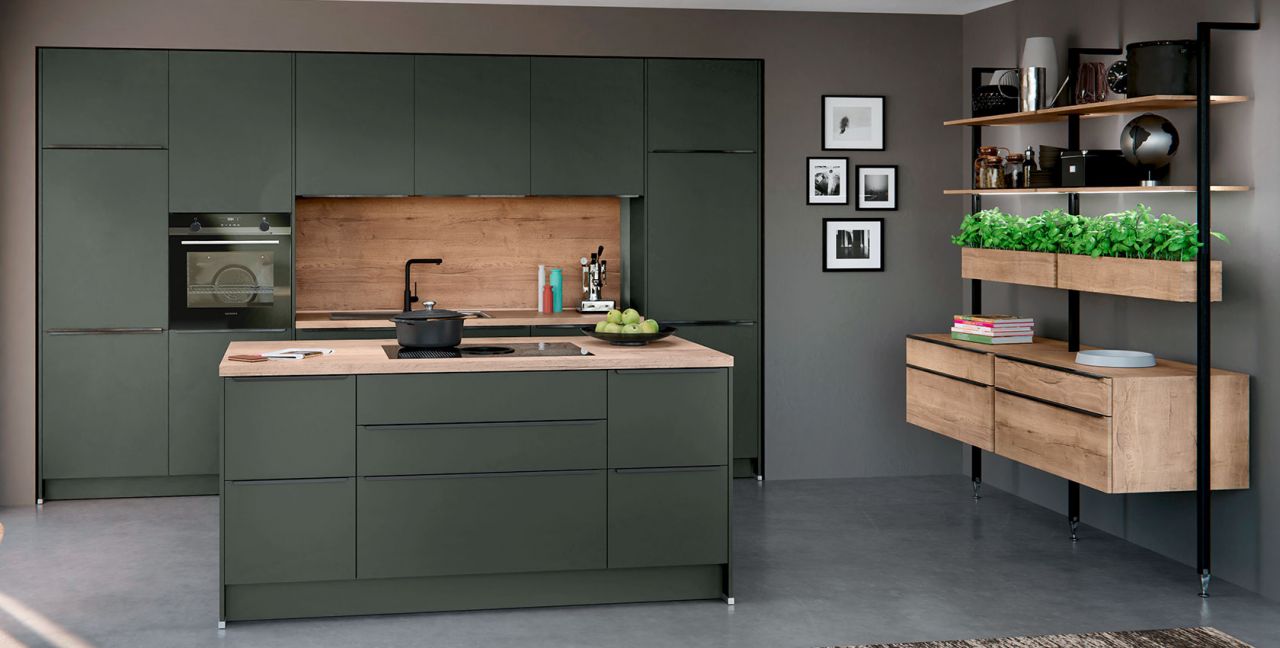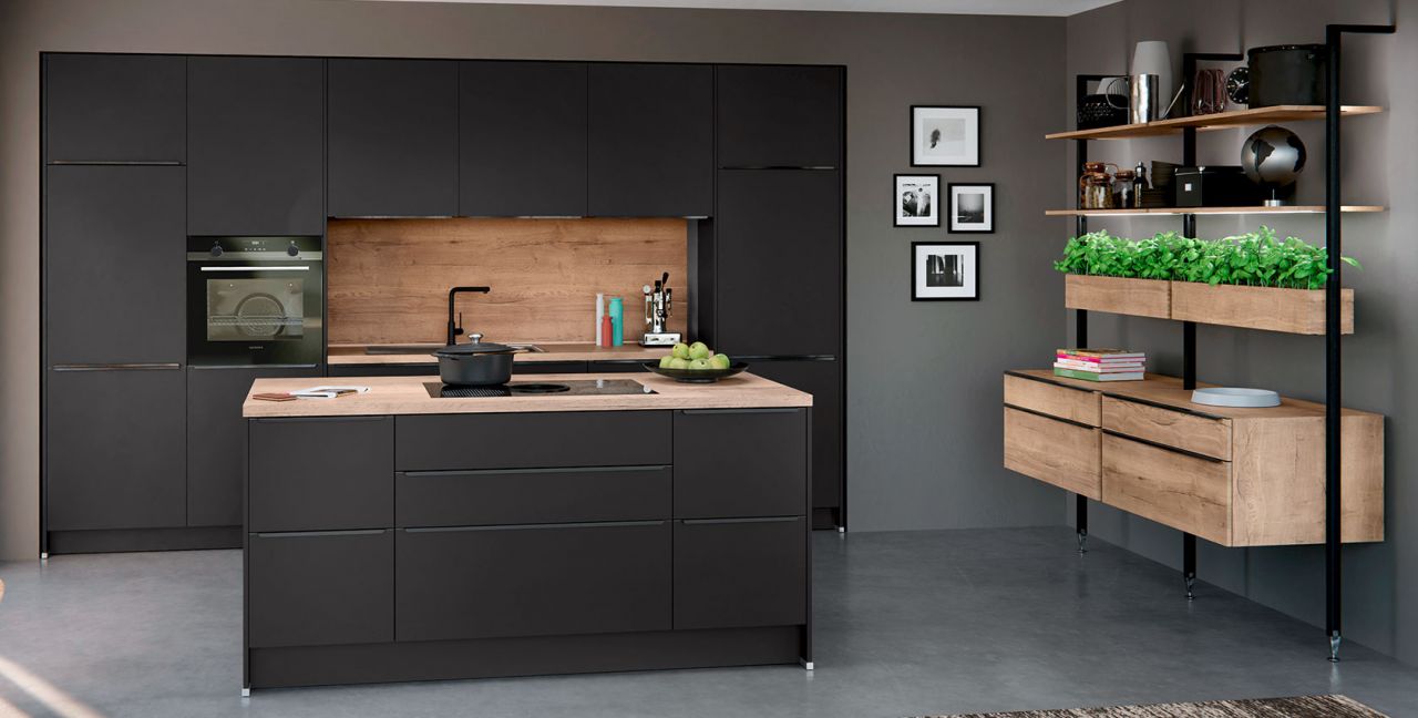 Inklusive Einbaubackofen in Schwarz mit Multifunktion AEG BEE43511AB Energieeffizienzklasse A, Glaskeramik Kochfeld mit Induktion und Kochfeldabzug (Umluft) Bora GP4U, Kühlschrank AEG OSK6I82EF Energieeffizienzklasse E, Geschirrspüler vollintegriert AEG FSB32610Z Energieeffizienzklasse E, Einbauspüle Edelstahl Rodi Okio Line 85 Deep, Stollenregalsystem, Unterschränken mit Großraumauszügen. Inklusive Lieferung.