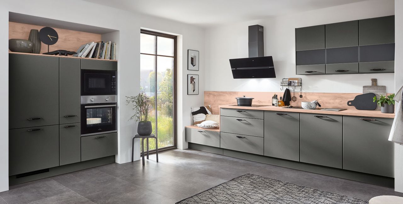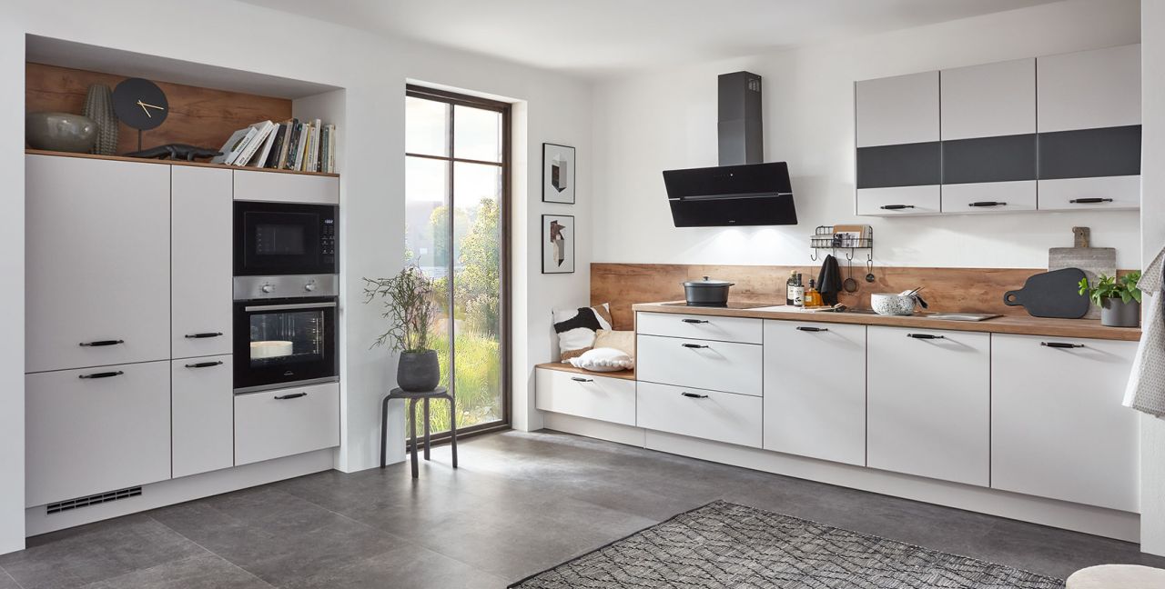 Inklusive Einbaubackofen Edelstahl Progress PBN13002X Energieeffizienzklasse A, Glaskeramik Kochfeld Progress PAS6001E, Designesse Edelstahl / Glas Elica WISE60BK Energieeffizienzklasse B, Kühlschrank mit **** Gefrierfach Progress PK0855 Energieeffizienzklasse E, Mikrowelle Laurus LEMW5, Geschirrspüler vollintegriert AEG FSB32610Z Energieeffizienzklasse E, Einbauspüle Edelstahl Rodi Okio Line 85 Deep, Unterschrank mit Frontauszügen, Wandschränken mit Segmentglastüren, Geschirrschrank. Inklusive Lieferung.