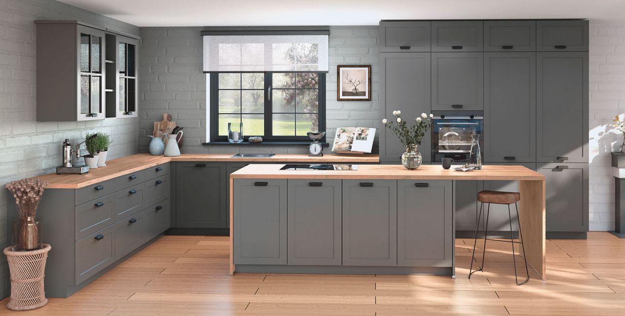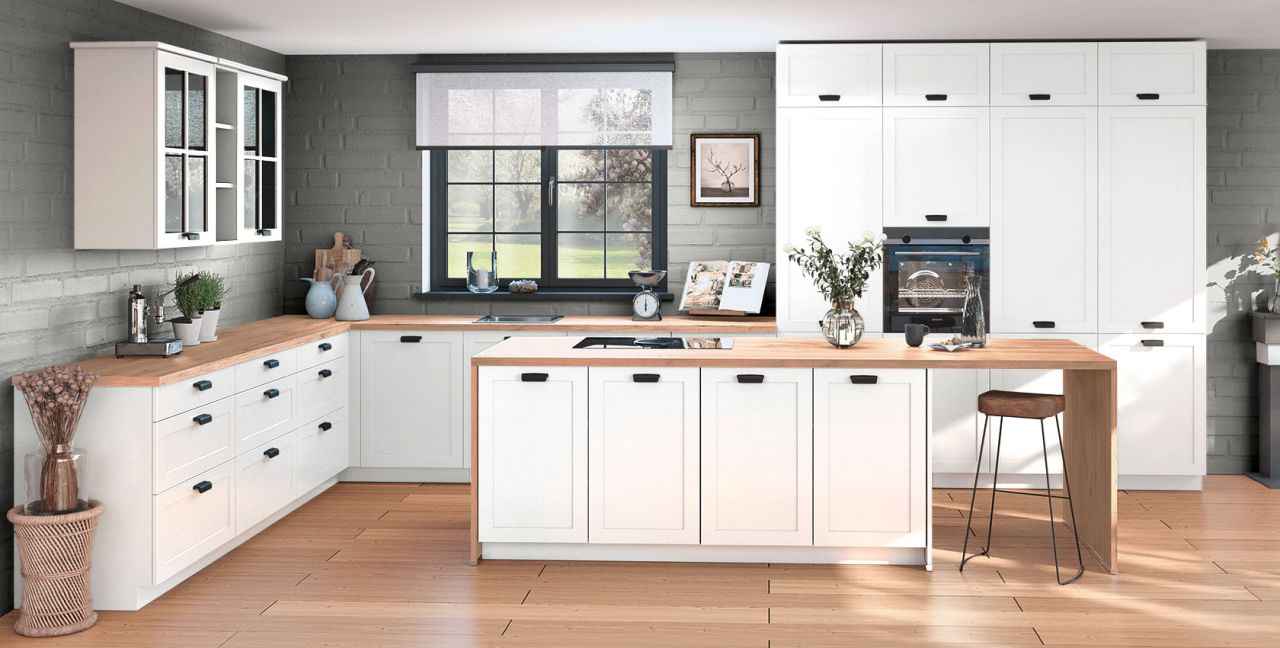Inklusive Einbaubackofen schwarz Miele H2465 B Active Energieeffizienzklasse A+, Glaskeramik Kochfeld mit Induktion und Kochfeldabzug (Umluft) Miele KMDA7272FR, Kühlschrank Miele K7115E Energieeffizienzklasse E, Geschirrspüler vollintegriert Miele G5110SC Active Energieeffizienzklasse D, Einbau-Designspüle Elleci Logik 300, Unterschränken mit Frontauszügen, Wandschränken mit Glassprossentür, Wandschrankregal, Essplatz, XL-Schränken. Inklusive Lieferung.